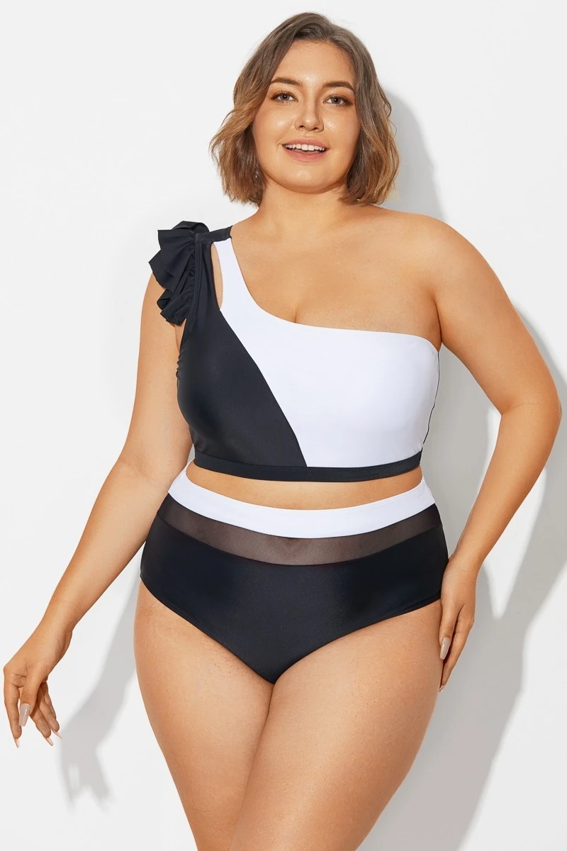 Black&White Chic One Shoulder Bikini Top