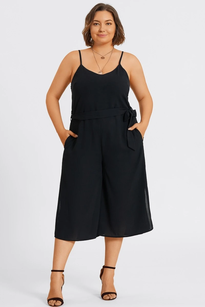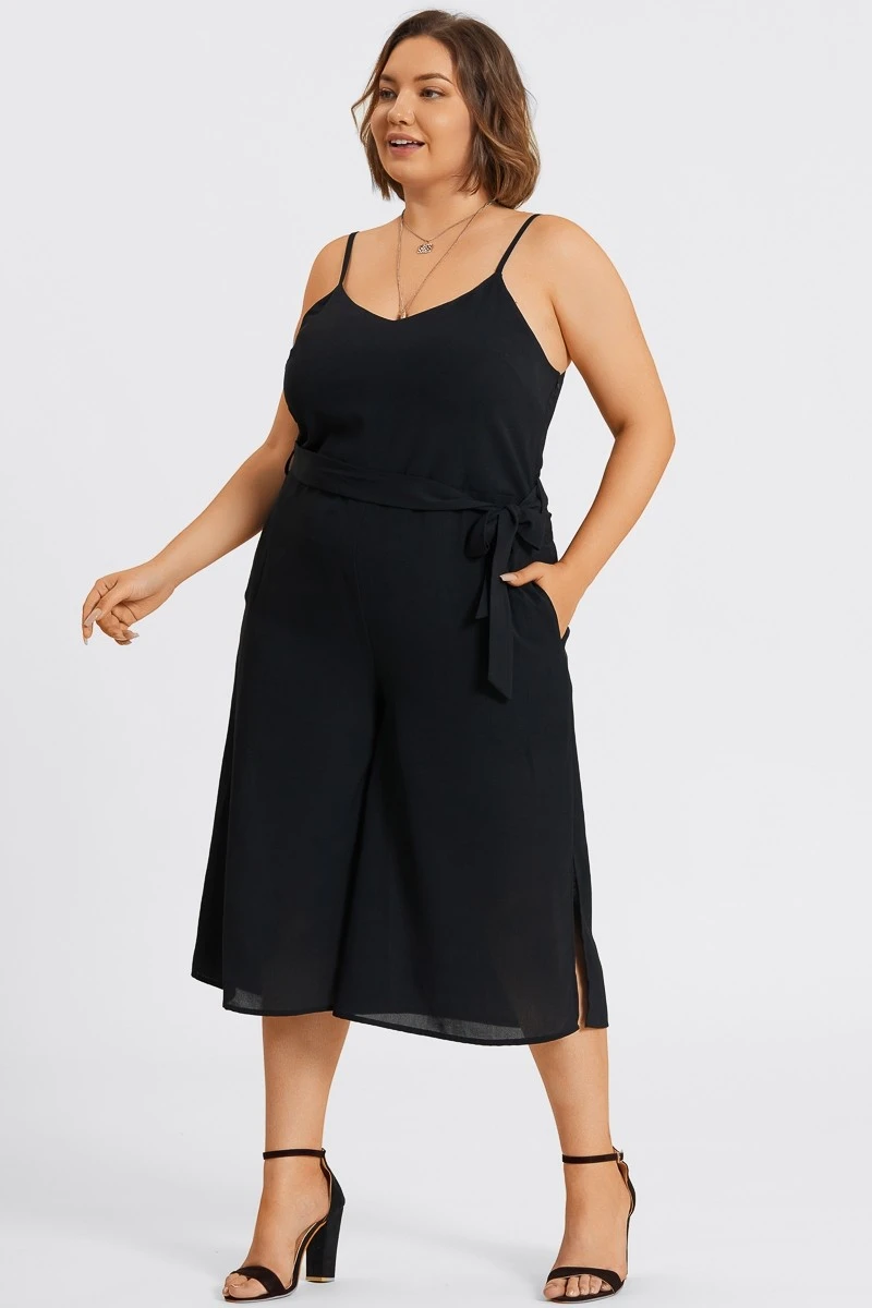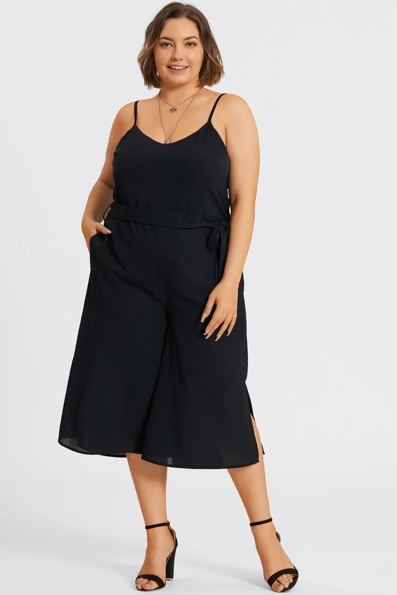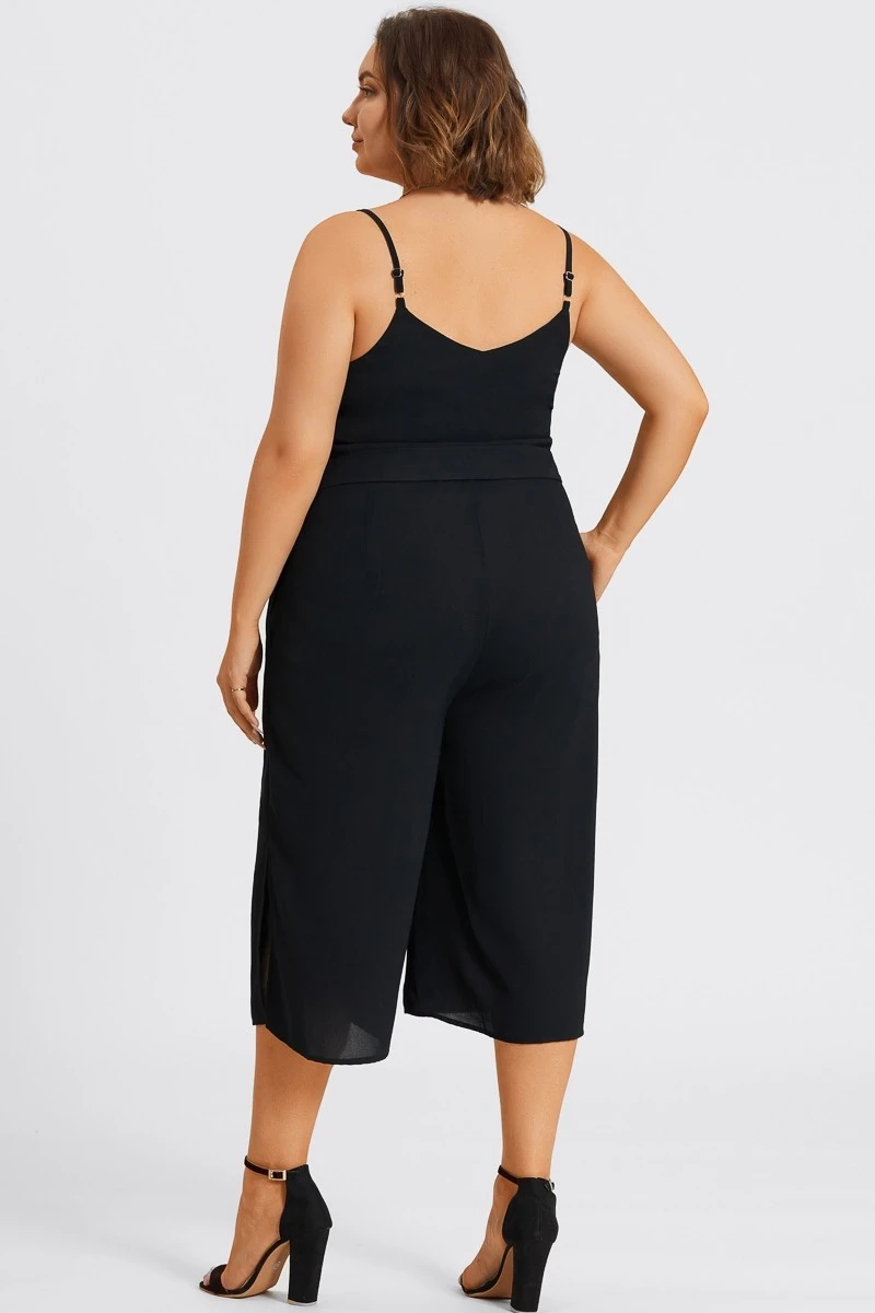 - This suspender culottes is designed with a V-neck, which is suitable for various life scenes in summer. The loose trousers can be matched with sandals and wedge heels.