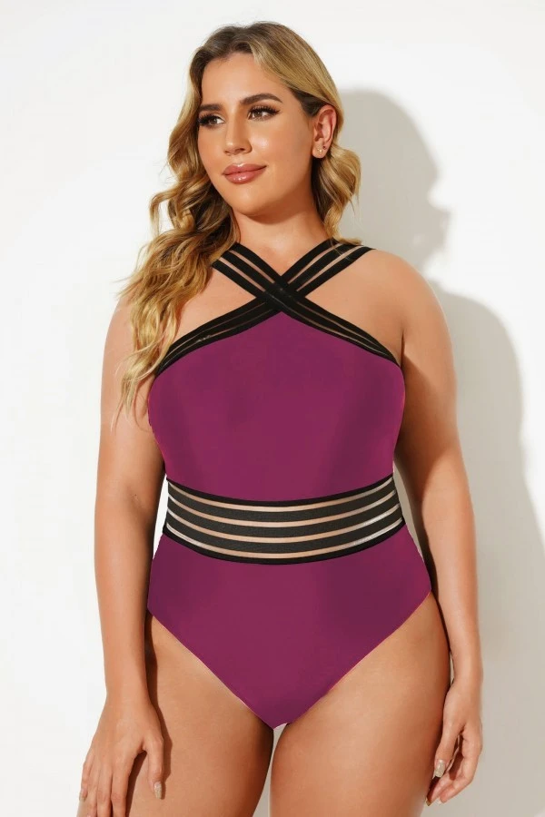 Red Criss-cross Straps Full Lining One Piece Swimsuit