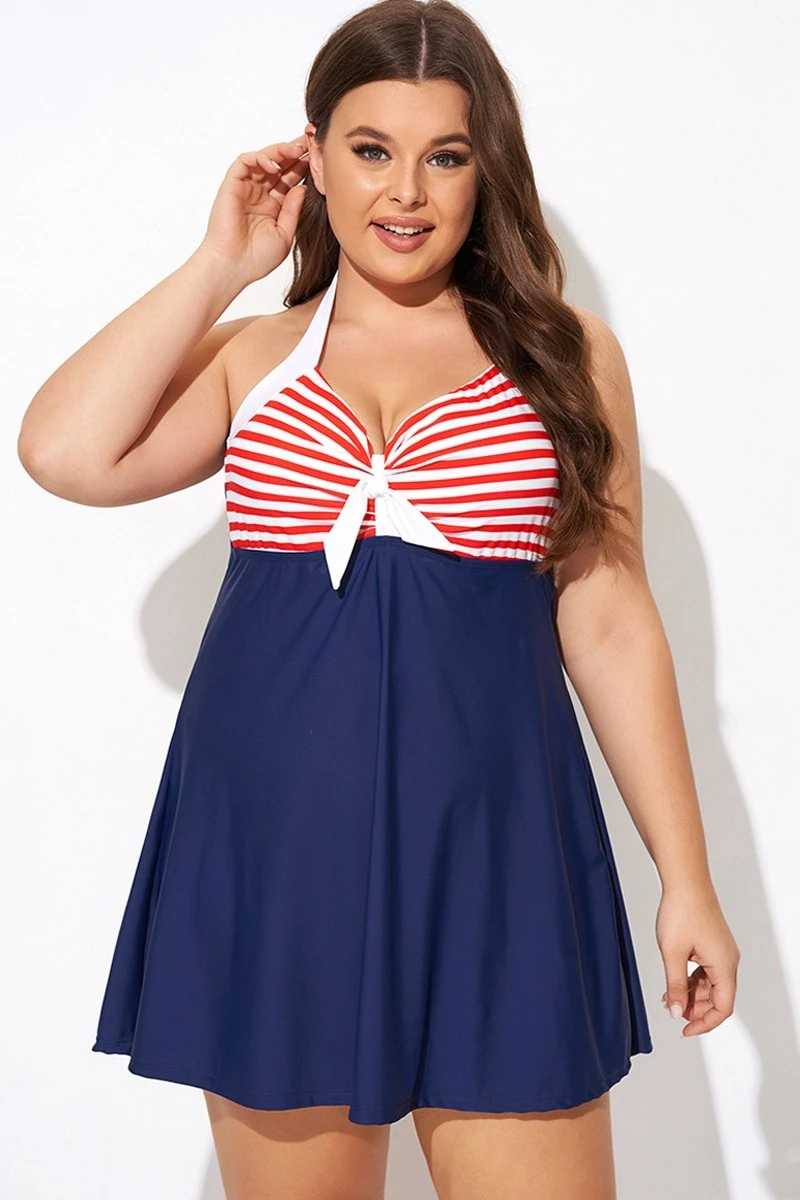 Vintage Stripe Halter Straps Women Swimdress